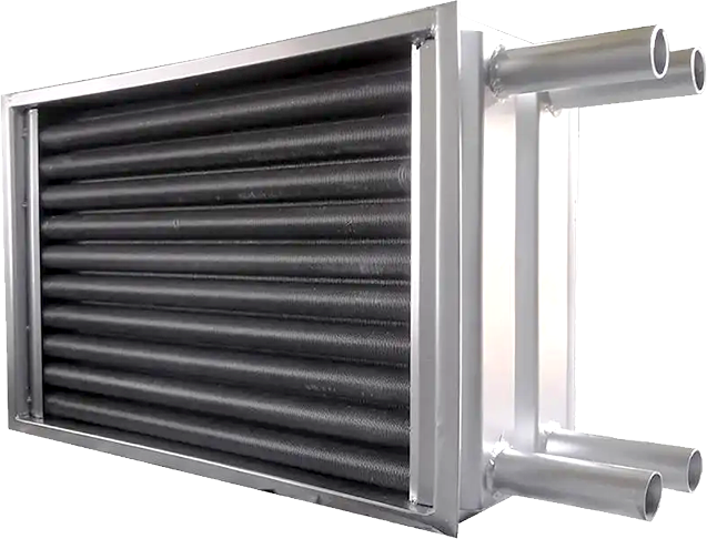 空氣散熱器是以翅片管為傳熱元件,以蒸汽可其它流體(導熱油、水等)為一種工質,以空氣為另一種工質,通過翅片管的強化傳熱,達到對管內工質的加熱、冷卻或以管內工質加熱、冷卻空氣的目的。